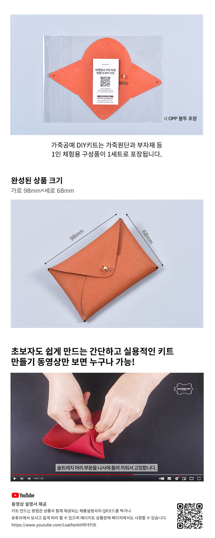 상품명[레더키트] 비행접시 카드지갑 만들기 10개( 천연사피아노가죽 공예DIY키트) 색상 랜덤