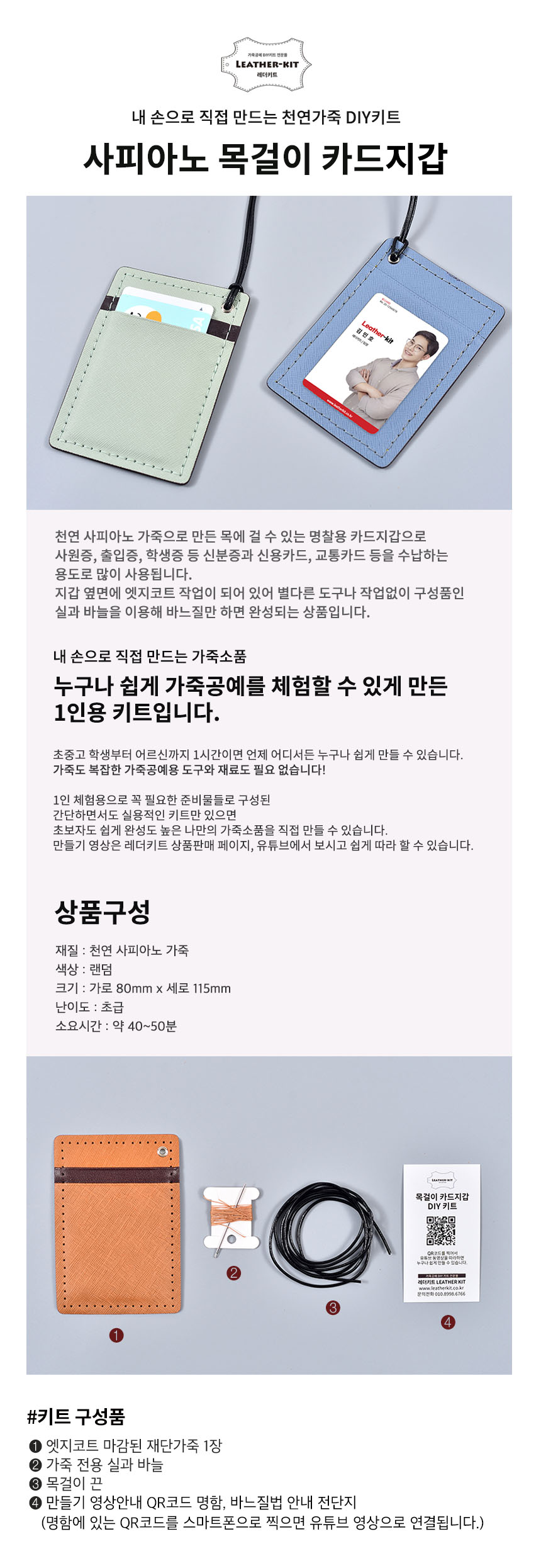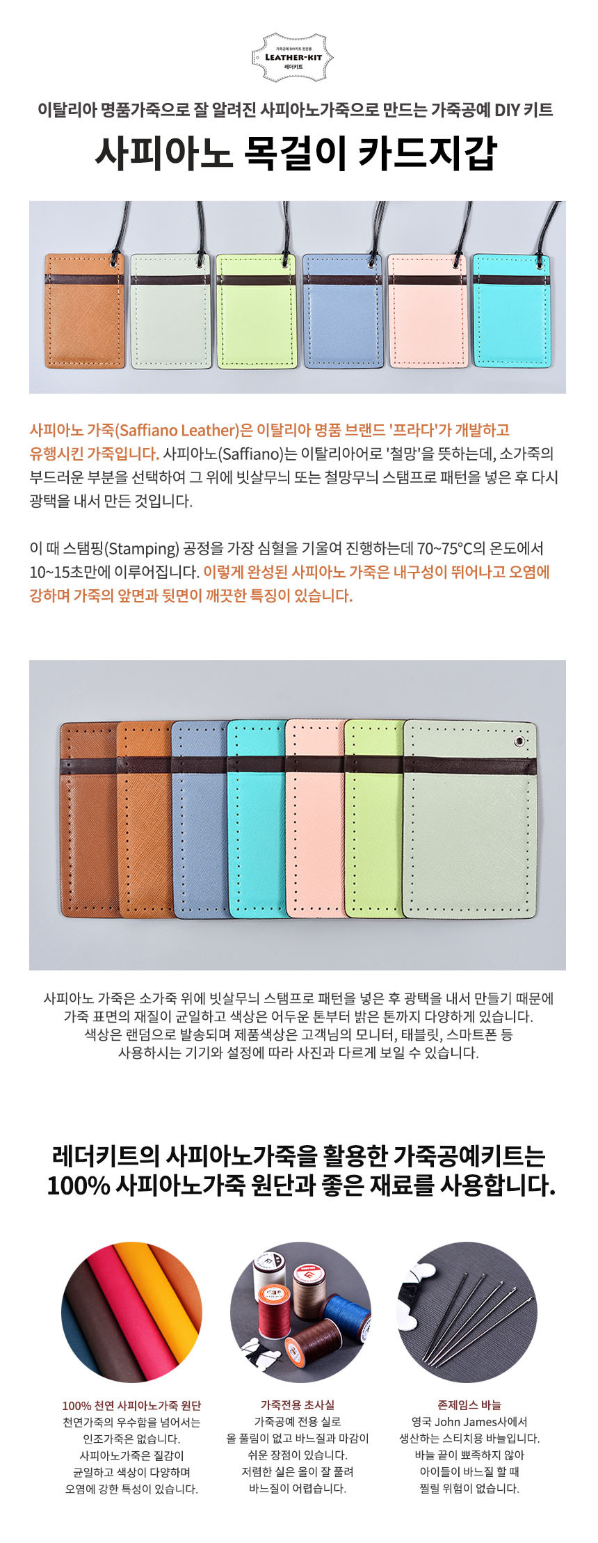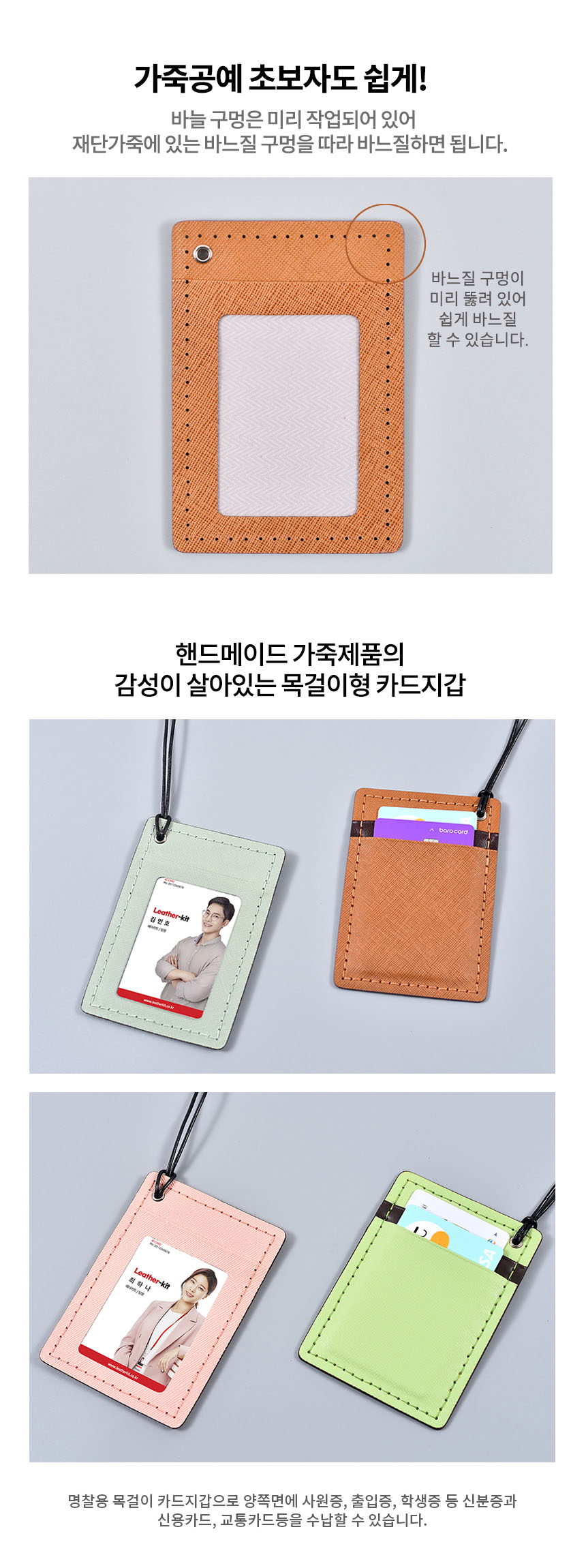 [레더키트] 목걸이 카드지갑 만들기 10개(천연사피아노가죽 공예DIY키트) 색상 변경