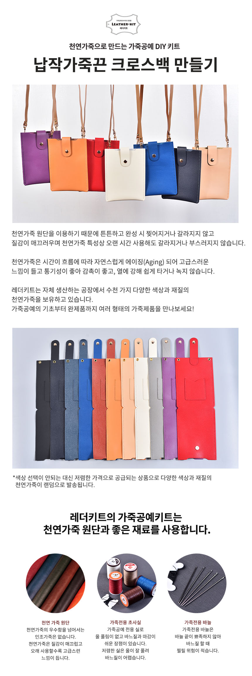 [레더키트] 납작크로스백 만들기 10개(가죽공예) 색상 랜덤