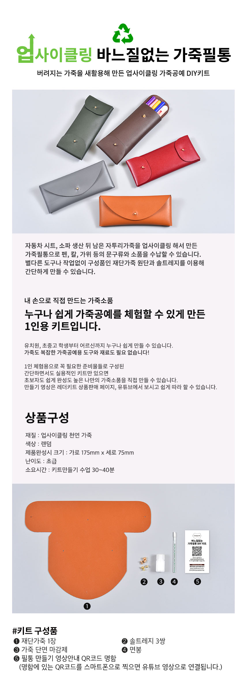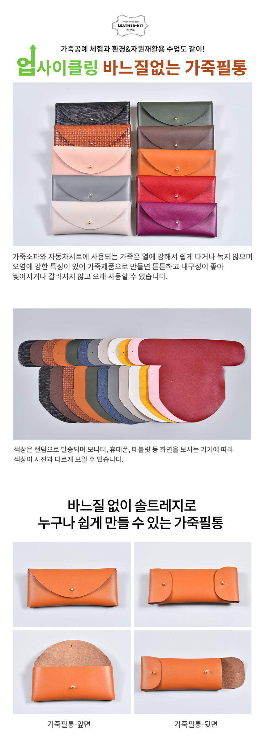 상품명[레더키트] 바느질없는 필통만들기 10개(천연가죽공예DIY) 색상 랜덤