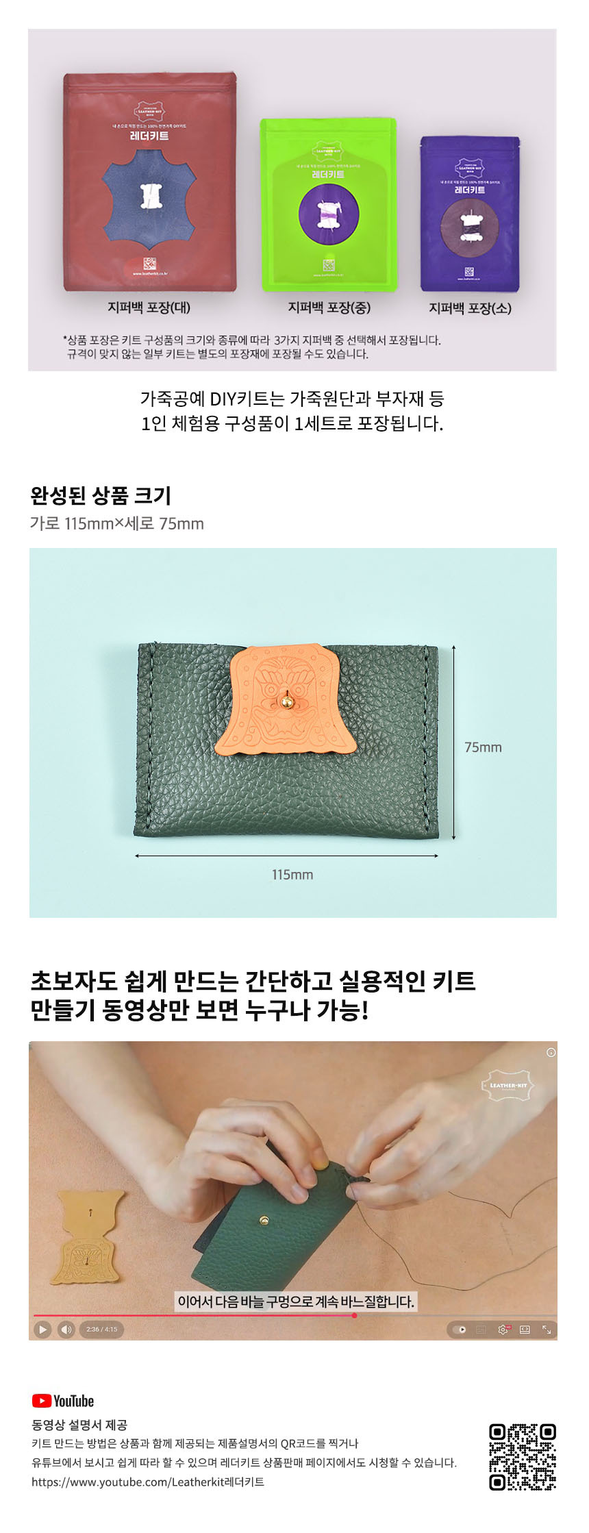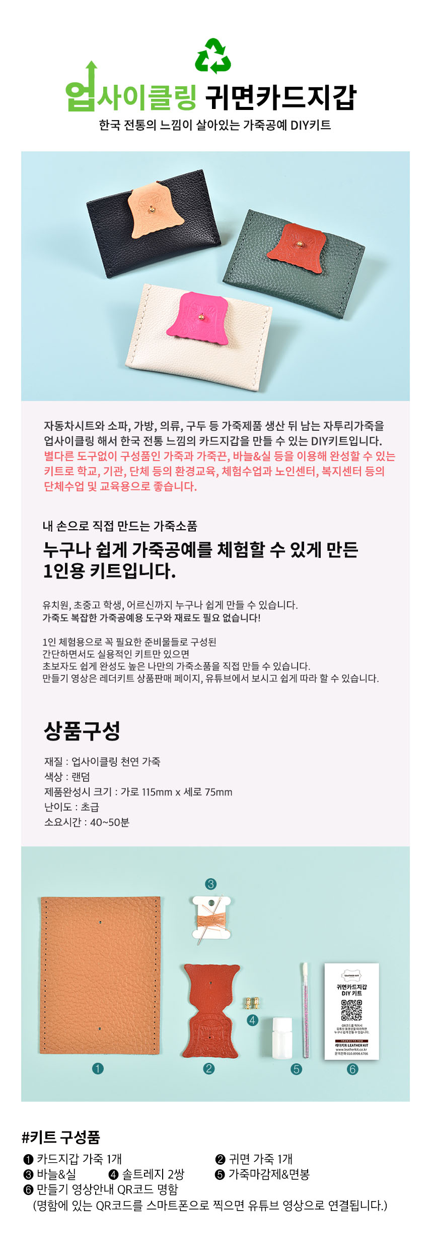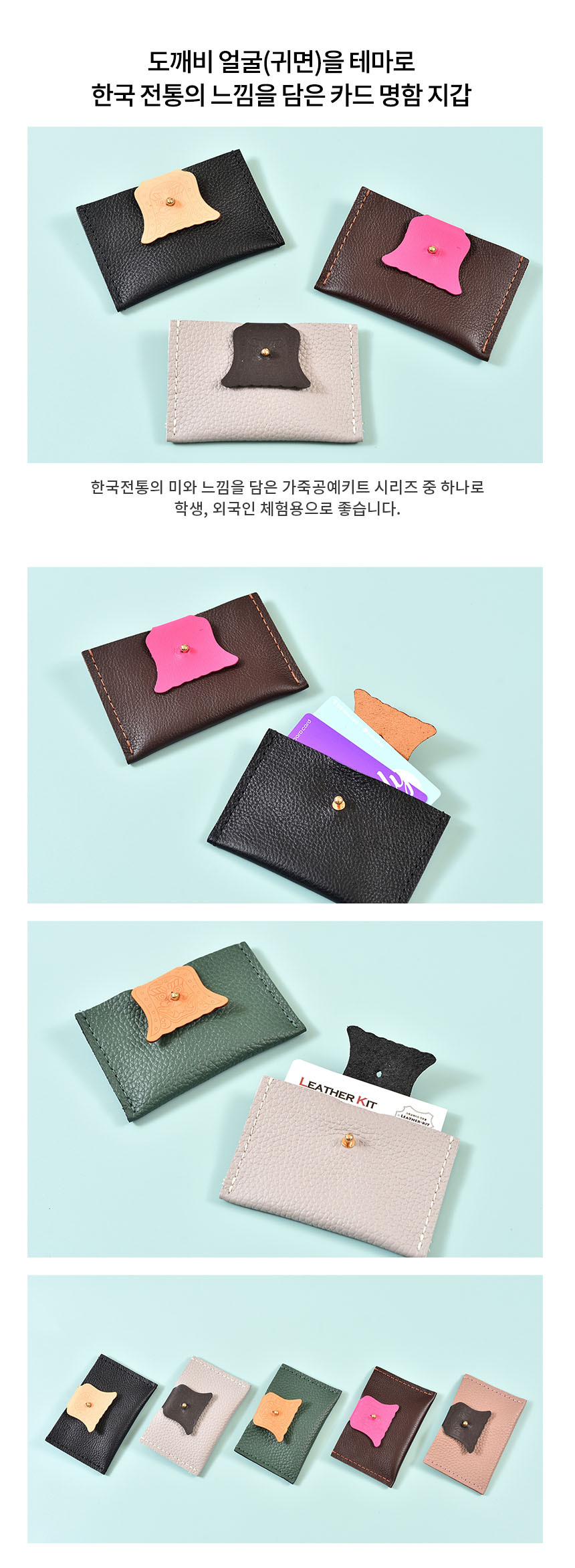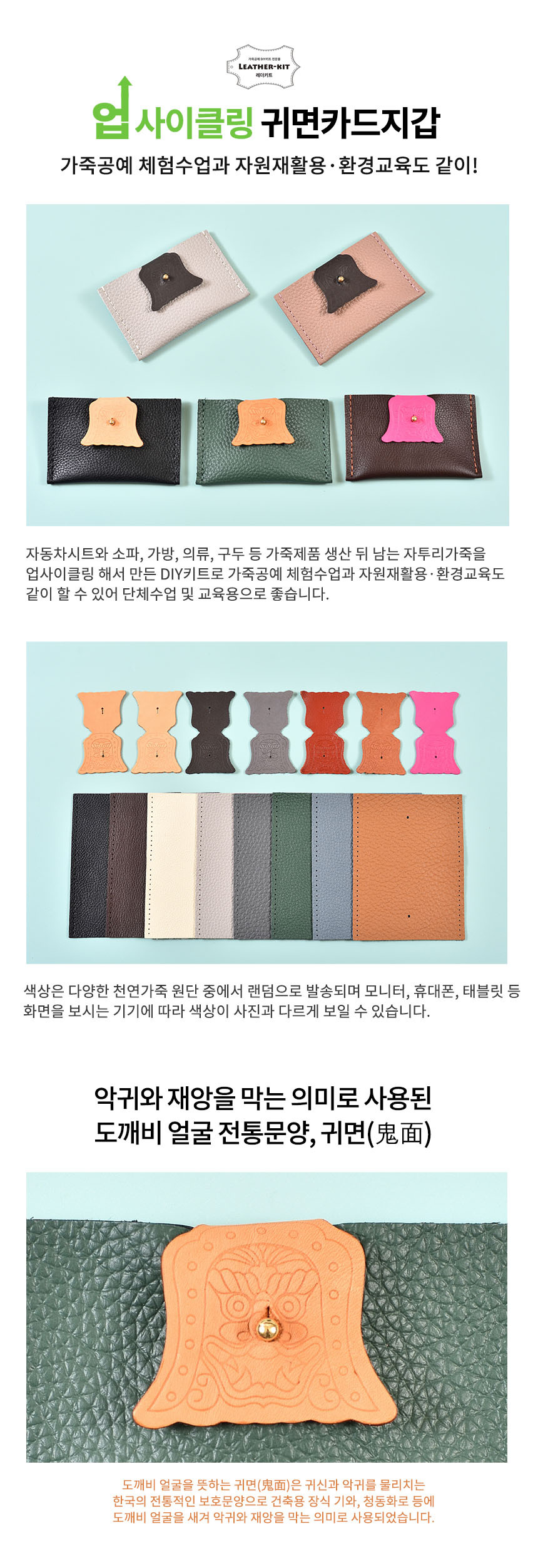 [레더키트] 전통문양 귀면 카드명함지갑 10개(가죽공예DIY키트) 색상 랜