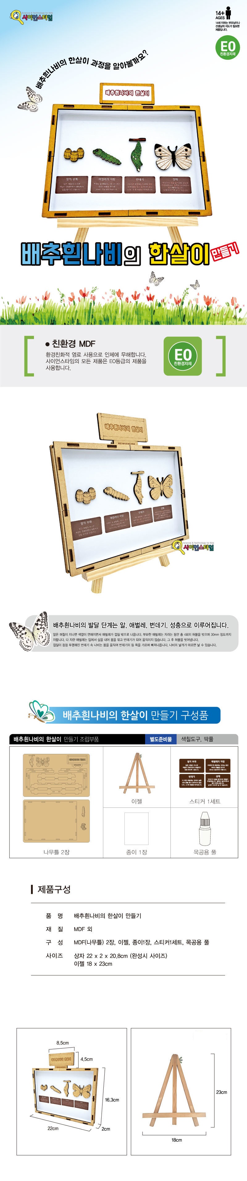 상품명배추흰나비의 한살이 만들기 5개 / 학습용 브로마이드 제공