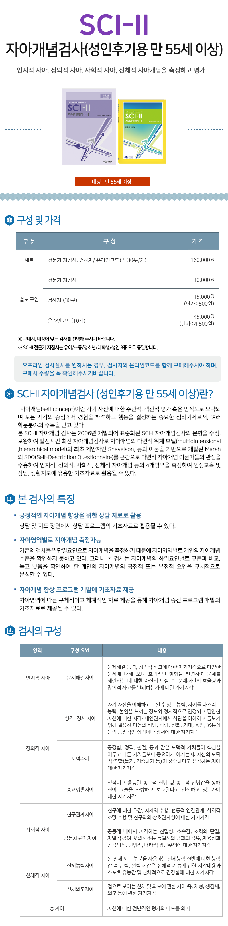 상품명SCI-II 자아개념검사 - 성인후기용 만 55 세 이상(B 레벨)