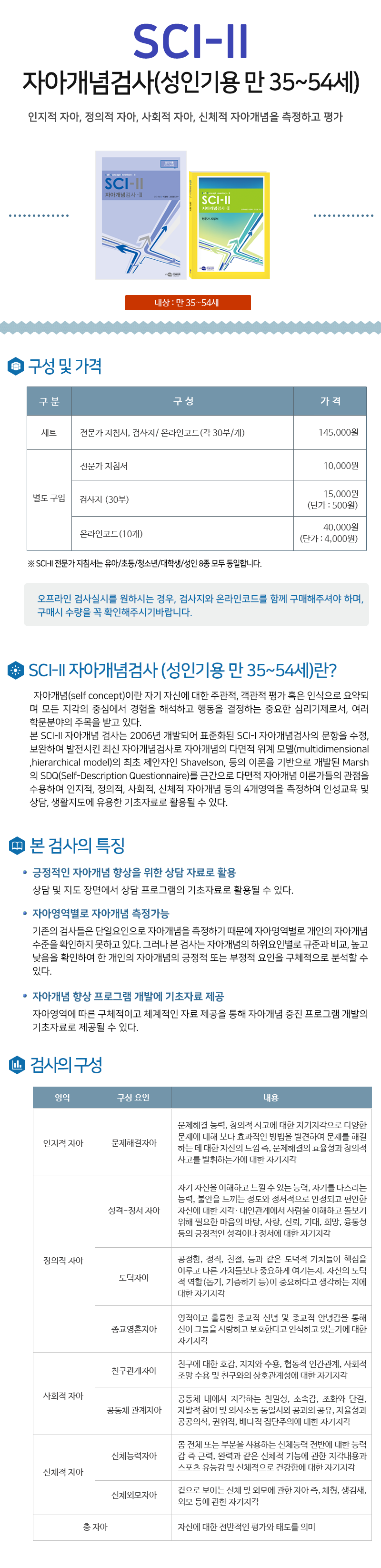상품명SCI-II 자아개념검사 - 성인기용 만 35~54 세(B 레벨)