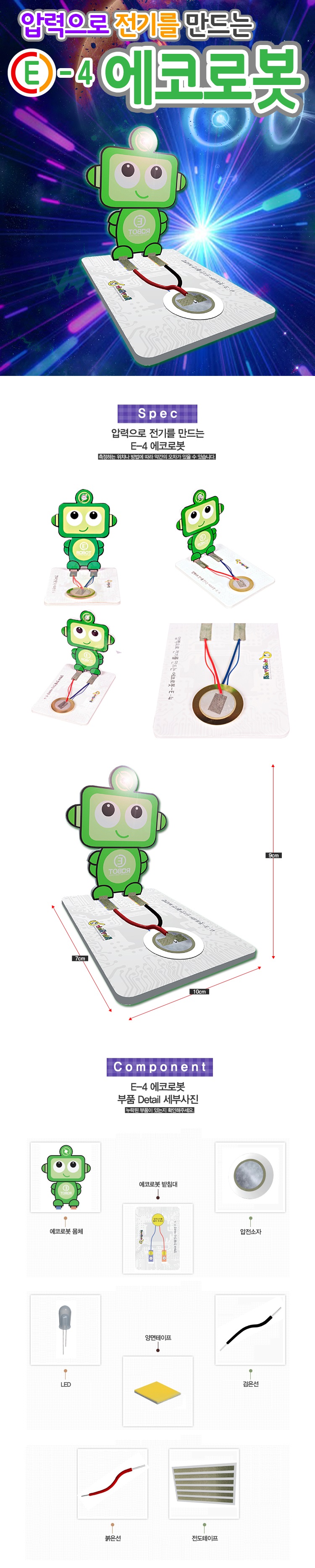 [전자과학교구] 압력으로 전기를 만드는 E-4 에코로봇 (두드리면 빛이나는 캐릭터) 10개