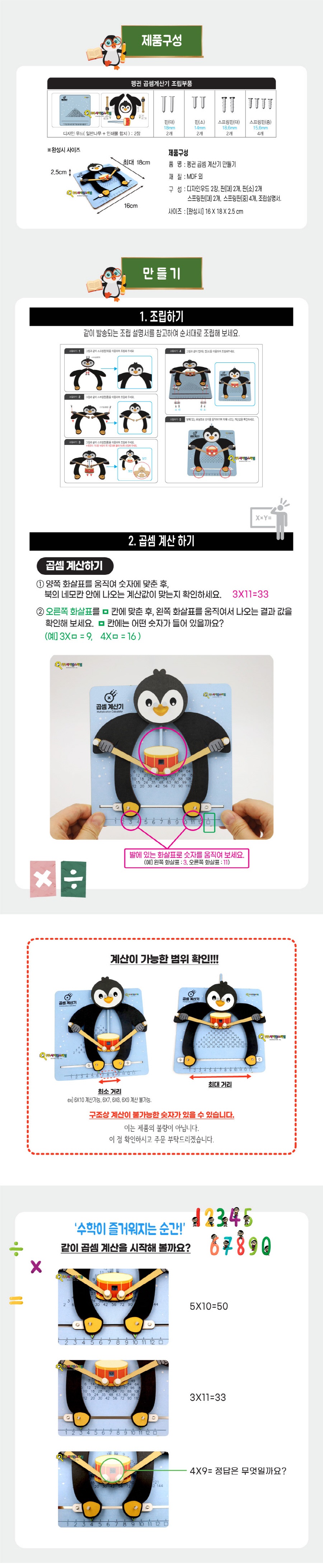 상품명[수학교구] 펭귄 곱셈 계산기 만들기 10개