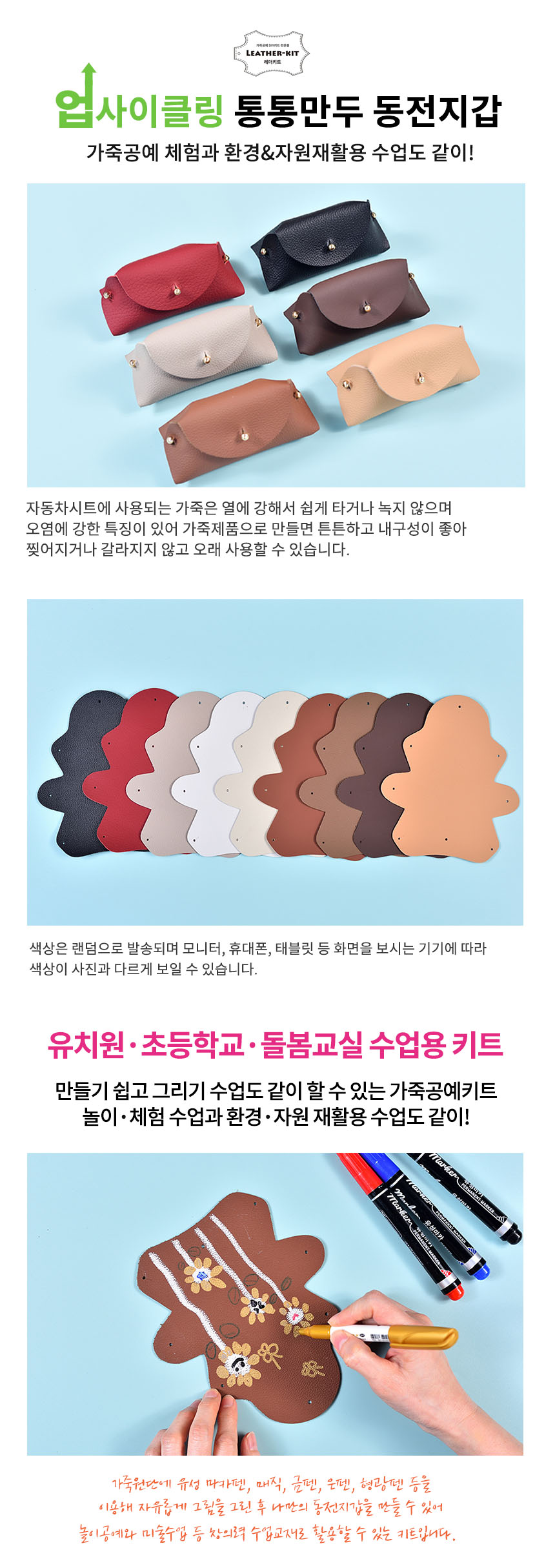 [레더키트] 통통만두 동전지갑만들기 10개( 환경교육 업사이클링 천연소가죽 공예DIY키트) 색상 랜덤