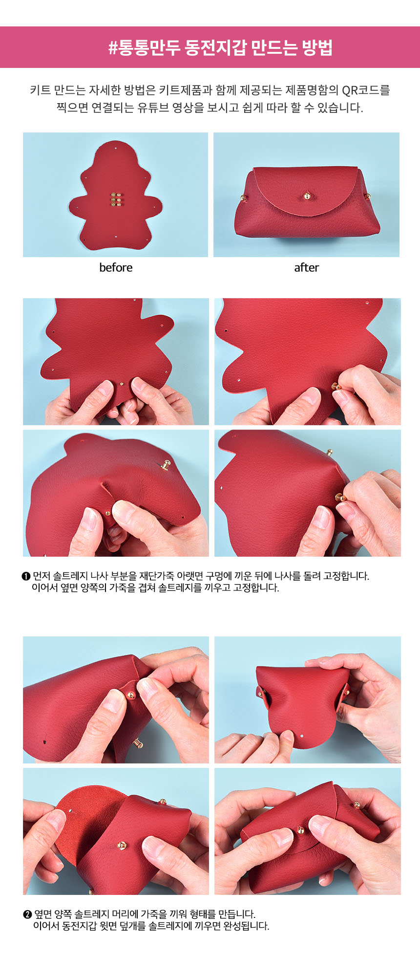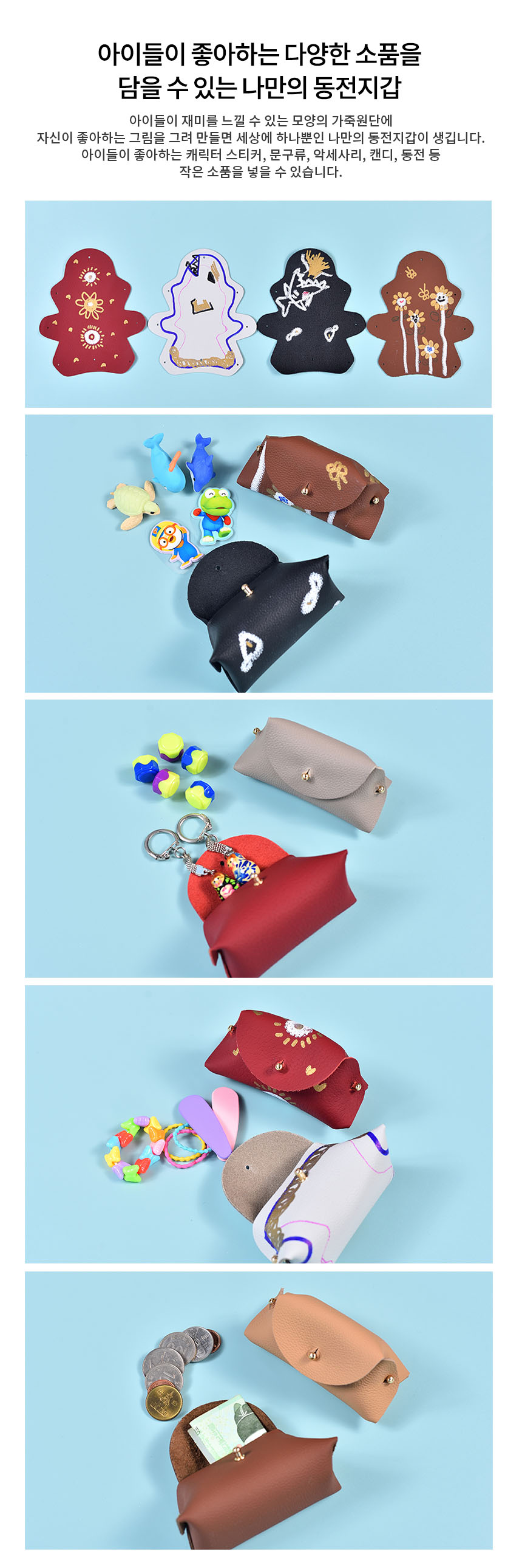 상품명[레더키트] 통통만두 동전지갑만들기 10개( 환경교육 업사이클링 천연소가죽 공예DIY키트) 색상 랜덤