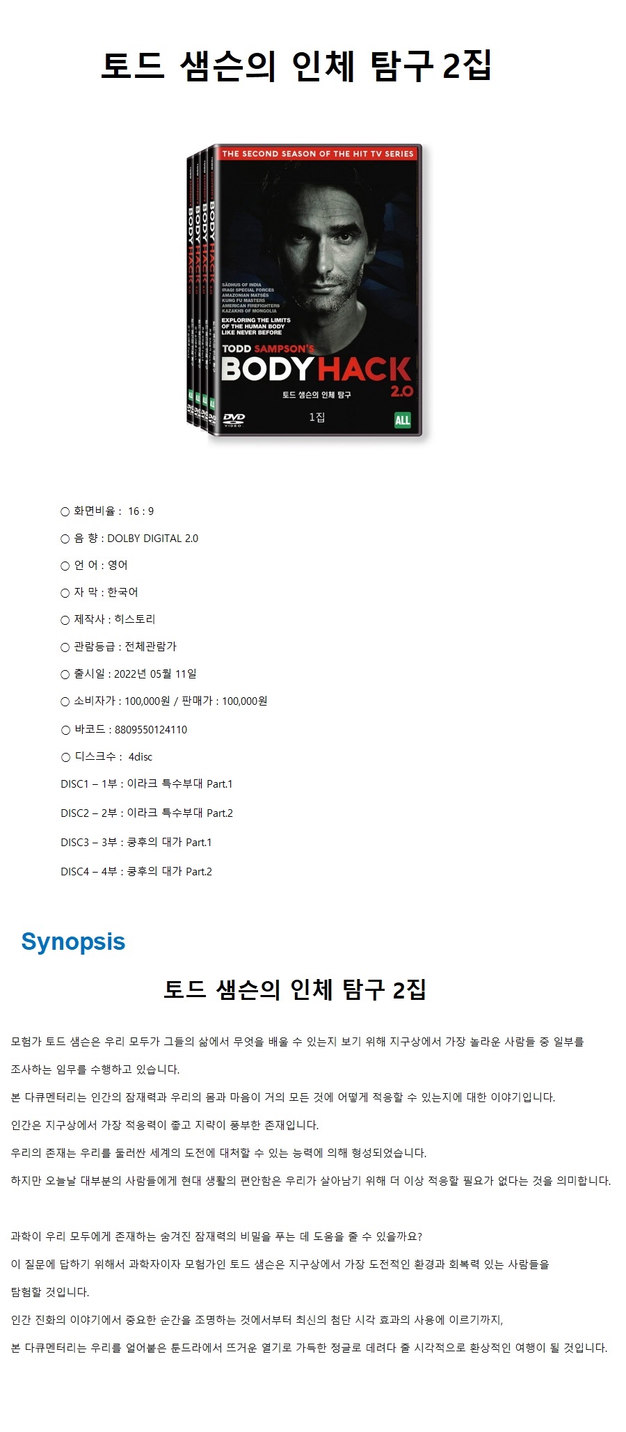 - CD,DVD매체의 상품은 개봉후 반품이 불가능합니다.